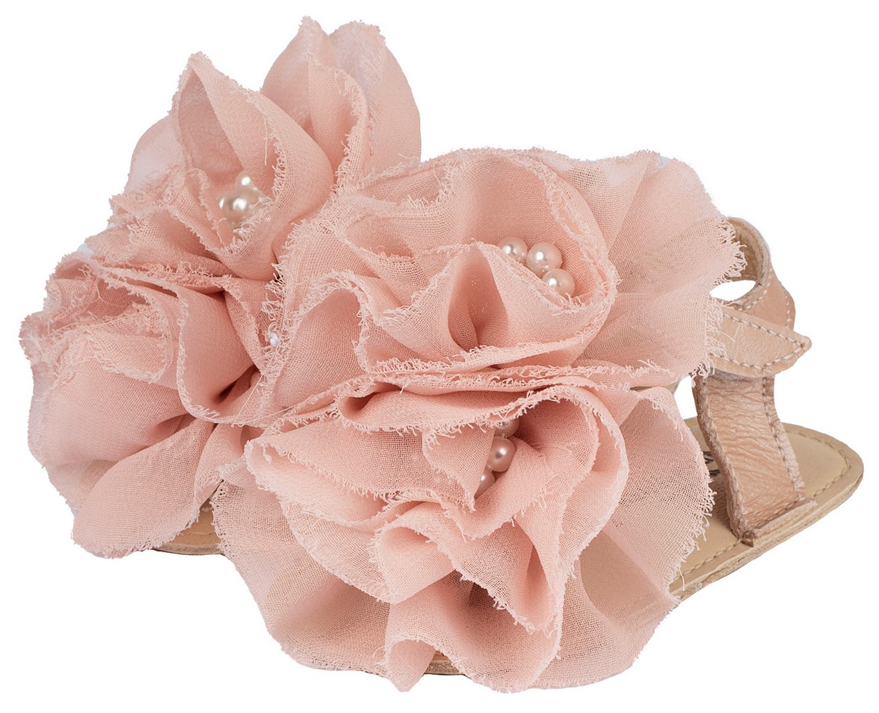 Δερμάτινο Πέδιλο με Chiffon λουλούδια από Δέρμα Πέρλα σε Ροζ Αντικέ Χρώμα