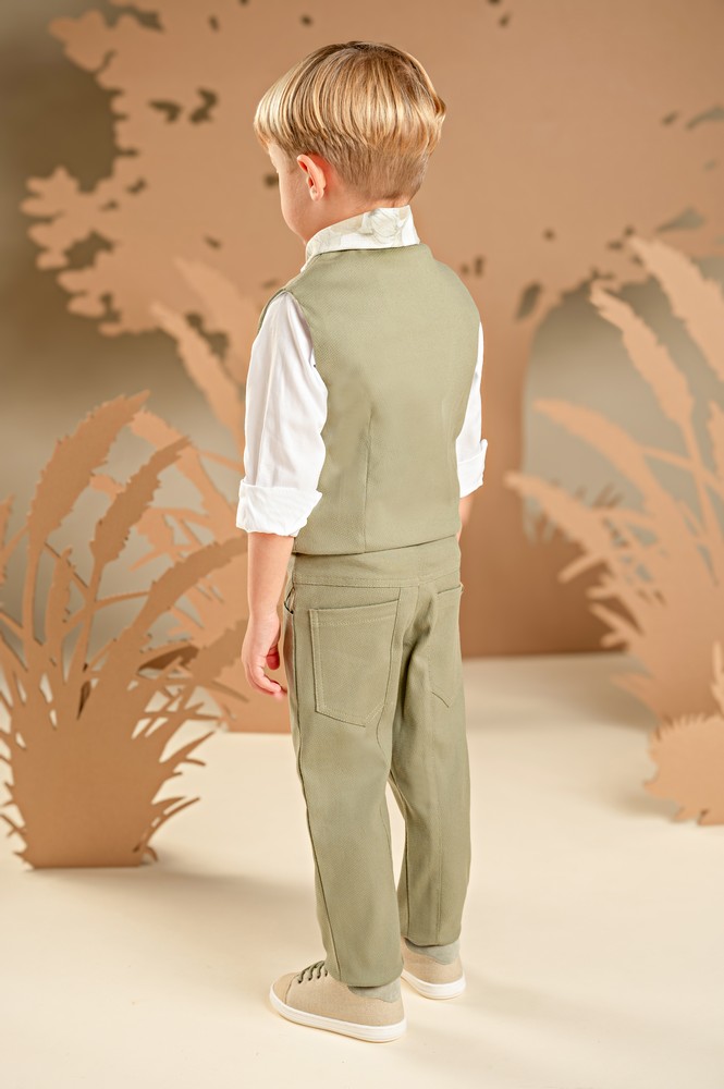 Ένα μοναδικό σύνολο με ξεχωριστή αισθητική. Το σετ περιλαμβάνει, παντελόνι με εντυπωσιακά κοψίματα μπροστά-πίσω και γιλέκο που διαθέτει λοξό κούμπωμα και υπερυψωμένο γιακά και τα δύο σε λαδί απόχρωση από βαμβακερό καμβά. Το βαμβακερό πουκάμισο σε off white απόχρωση με τον ιδιαίτερο Mao γιακά μαζί με το exclusive εμπριμέ φλοράλ φουλάρι Baby Bloom σε μπεζ-λαδί τόνους και την υφαντή ζώνη αναδεικνύουν τέλεια το look. Για την τελική πινελιά, επιλέξτε ανάμεσα σε ψάθινο καπέλο ή υφασμάτινη τραγιάσκα, ανάλογα με το προσωπικό σας στιλ.