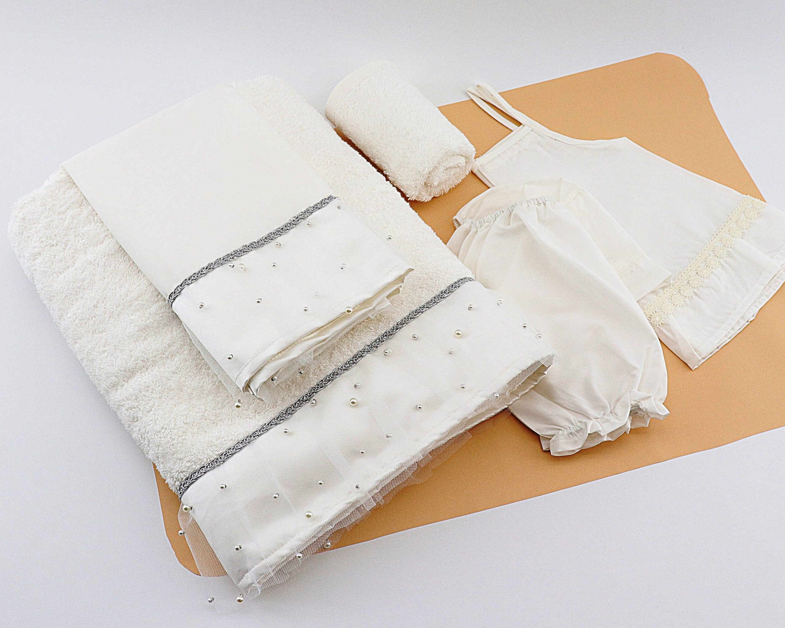 Σετ Λαδόπανα Βάπτισης κορίτσι λευκό M38