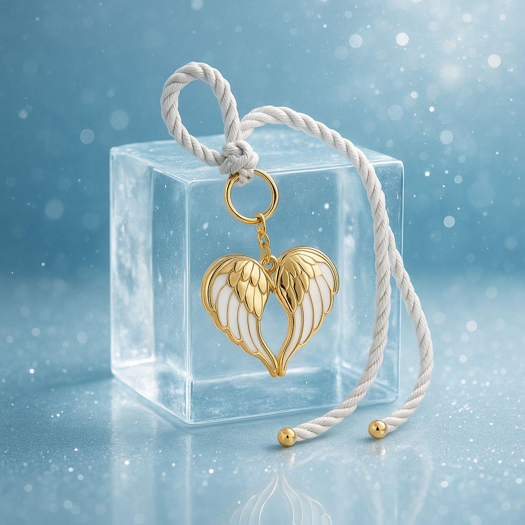 Αφήστε την καρδιά σας να πετάξει με το εντυπωσιακό κρεμαστό μπρελόκ, όπου τα περίτεχνα φτερά ενώνονται με μαγευτική χάρη, σχηματίζοντας ένα σύμβολο απόλυτης αγάπης. Ένα εκλεπτυσμένο κόσμημα που φέρνει μαζί του την ουσία της αφοσίωσης σε κάθε σας στιγμή.