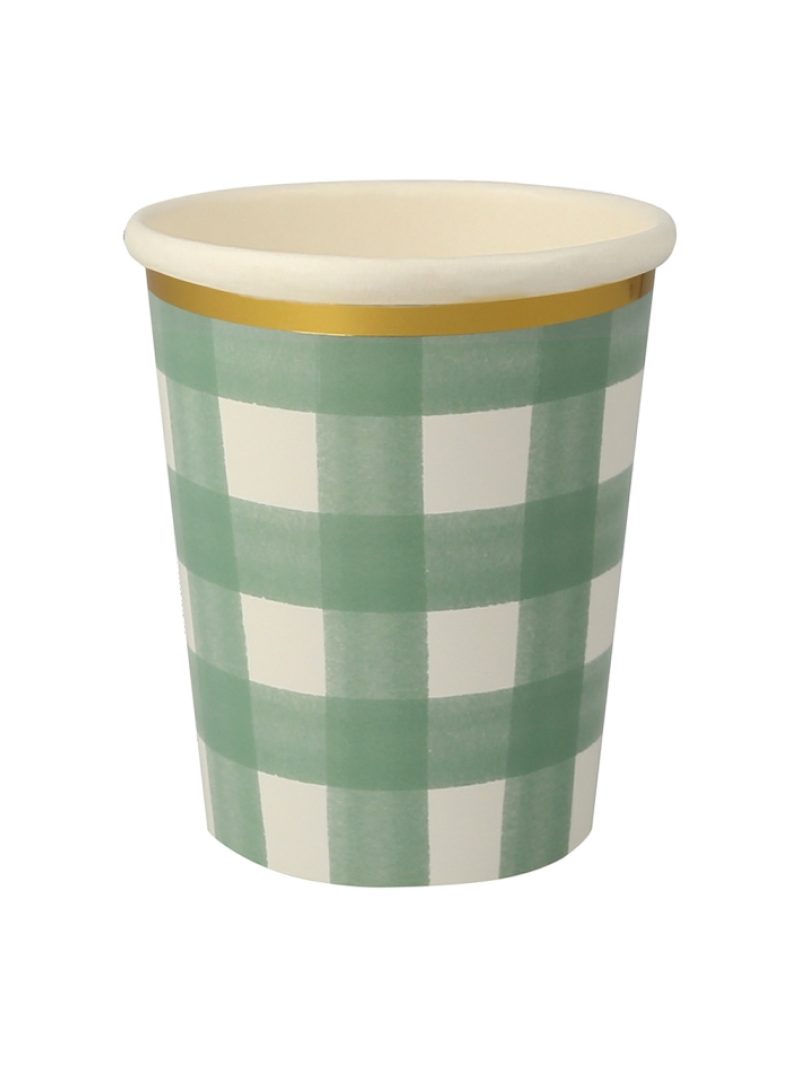 Χάρτινο ποτήρι με gingham print πράσινης απόχρωσης.