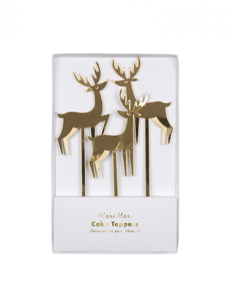 Χριστουγεννιάτικα διακοσμητικά stics σε σχέδιο ταράνδου με χρυσές ακρυλικές λεπτομέρειες για να απογειώσετε την εμφάνιση του εορταστικού γλυκού σας.