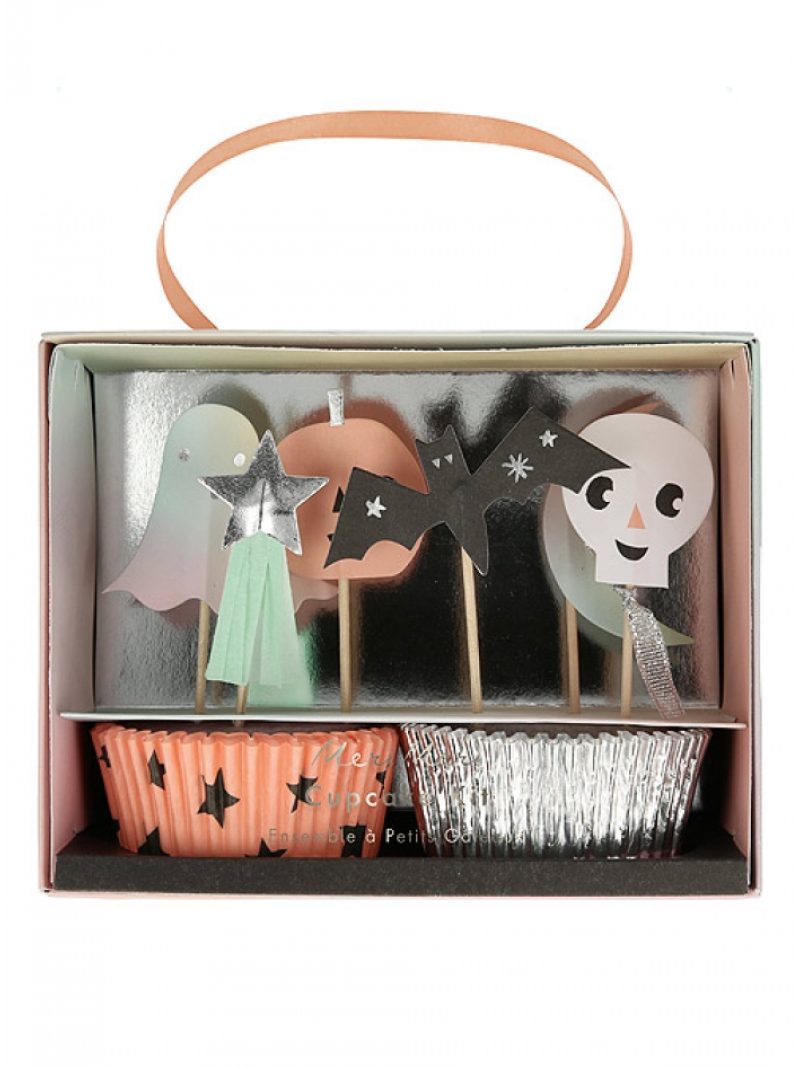 Σετ για cupcakes με halloween θέμα σε παστέλ αποχρώσεις.