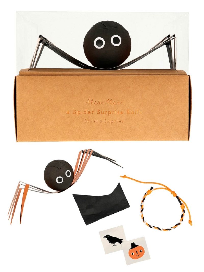 Κάθε μπάλα αράχνη περιλαμβάνει 1 βραχιολάκι, 1 χάρτινο καπέλο, 2 προσωρινά τατουάζ και 1 αστείο.
