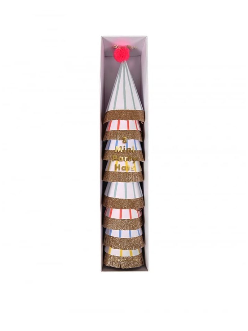 Χάρτινα καπελάκια πάρτι με 4 διαφορετικούς νέον χρωματισμούς με υπέροχα πολύχρωμα pom pom σε έντονα χρώματα.