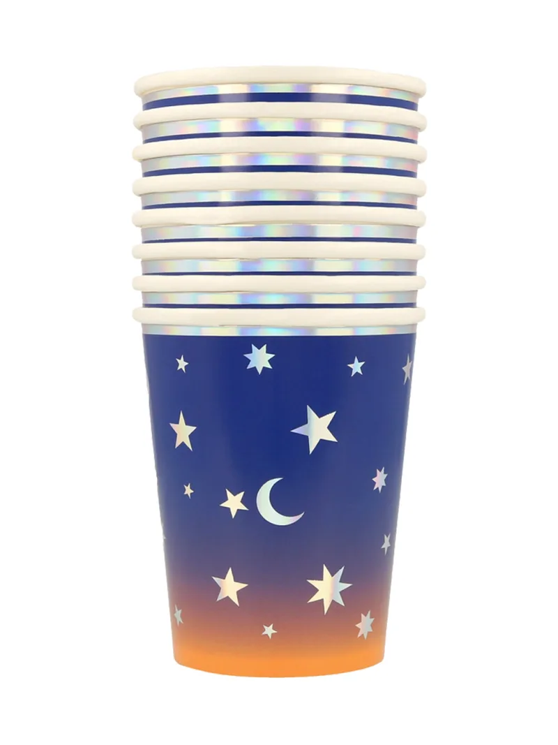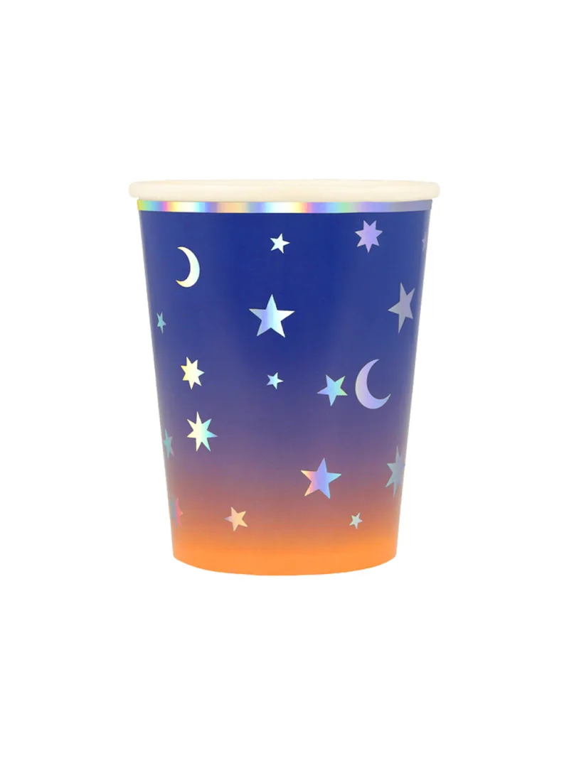 Αυτά τα χάρτινα μοντέρνα ποτήρια ombre αποτυπώνουν μαγικά τον νυχτερινό ουρανό καθιστώντας τα ιδανικά για την εξαιρετική γιορτή σας.