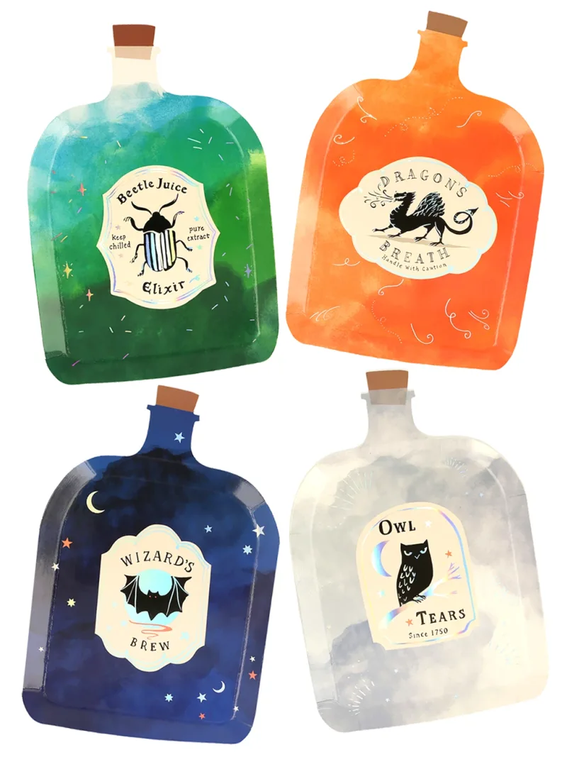 Φτιάξτε ένα μαγικό πάρτι με τα ειδικά πιάτα μας. Είναι έξυπνα διαμορφωμένα για να μοιάζουν με μπουκάλια με φίλτρο.
