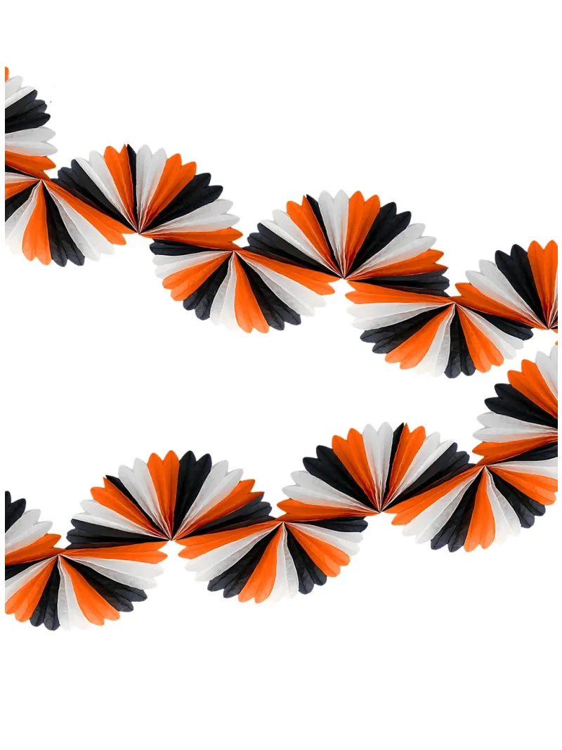 Ο συνδυασμός μαύρων, πορτοκαλί και λευκών σχημάτων βεντάλιας δίνει μια εντυπωσιακή εμφάνιση στο τραπέζι ή στον τοίχο του πάρτι ή της βεράντα σας.