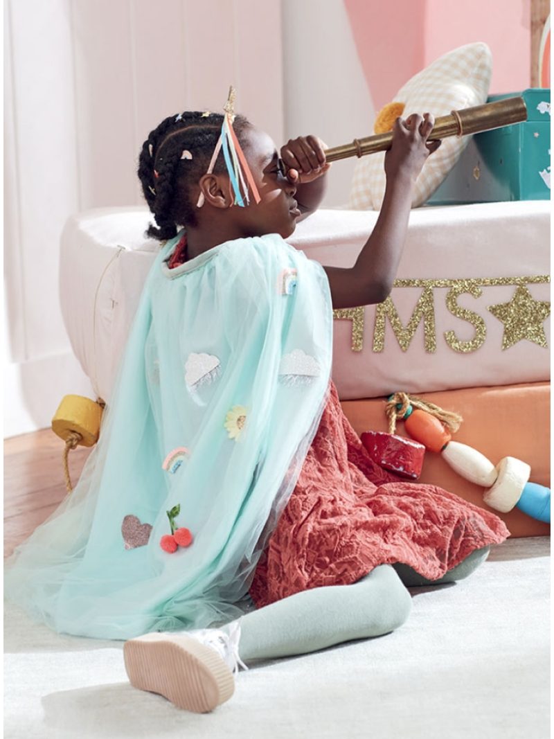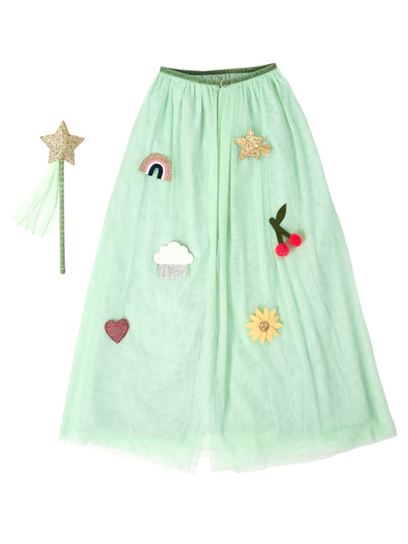 Η κάπα είναι κατασκευασμένη από τούλι σε απαλή mint απόχρωση και διακοσμείται με διάφορα icons.