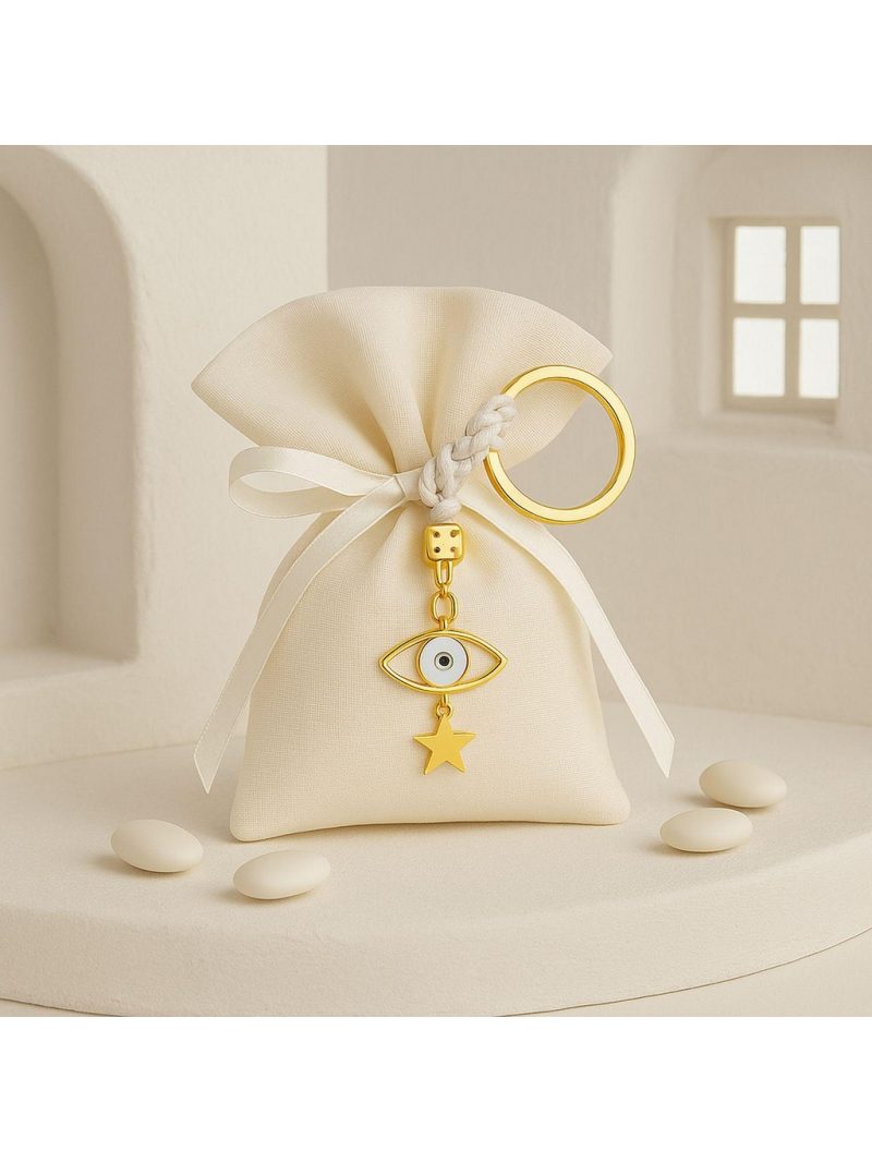 Μπομπονιέρα βάπτισης κ γάμου μπρελόκ που αποτελεί ένα μοναδικό ενθύμιο συνδυάζοντας το συμβολικό μάτι με το κομψό αστέρι. Ύψος: 14cm