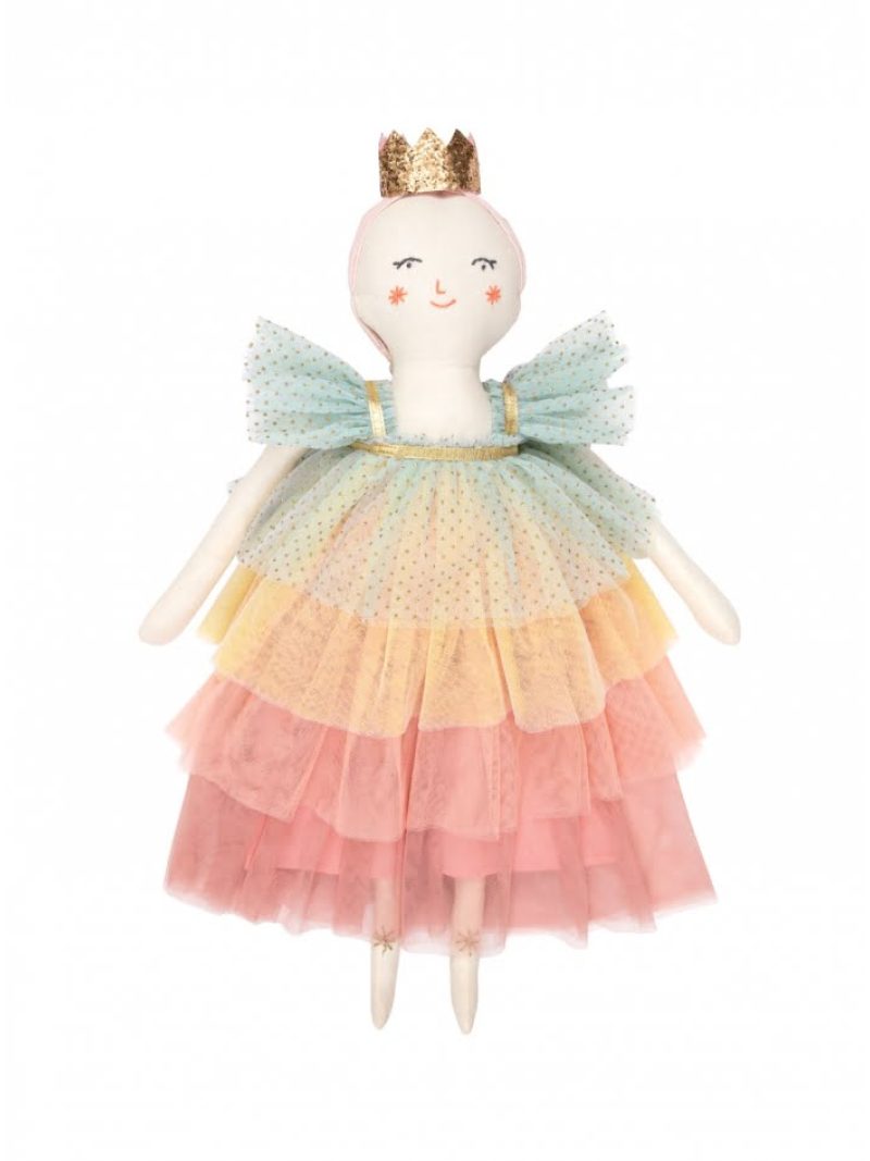 Έχει όμορφα ροζ μαλλιά, ένα τούλινο φόρεμα με υπέροχα χρώματα και ένα χρυσό στέμμα με κλιπ που βγαίνει και μπορεί να στολίσει τα μαλλάκια των μικρών κοριτσιών.