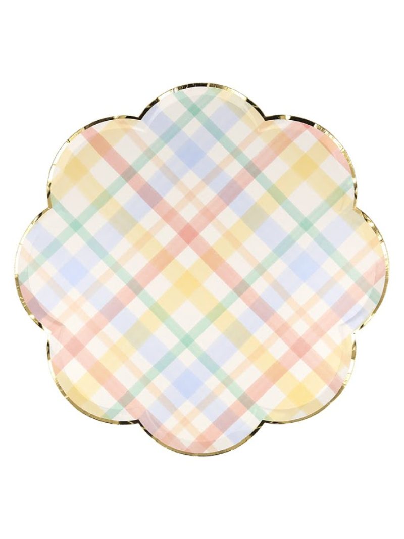 Χαρτοπετσέτα γλυκού με καρό σχέδιο σε ανοιξιάτικα χρώματα.