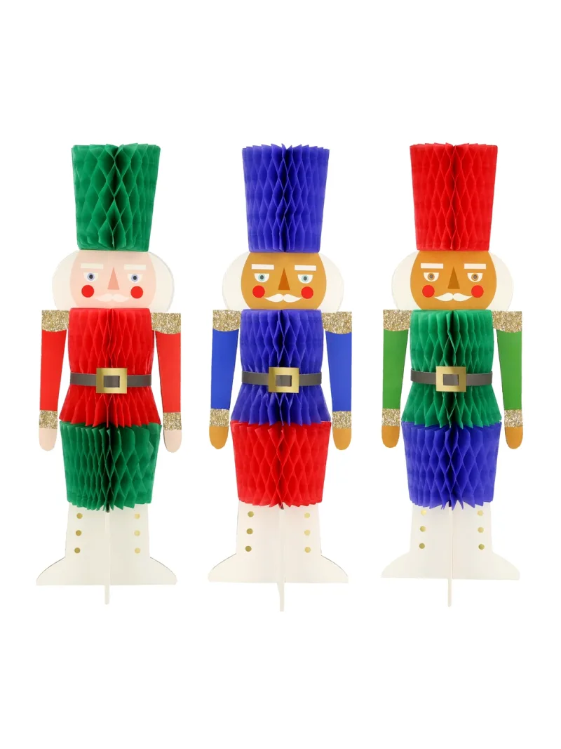 Χάρτινα honeycomb διακοσμητικά σε σχήμα καρυοθραύστη και 3 χρώματα.