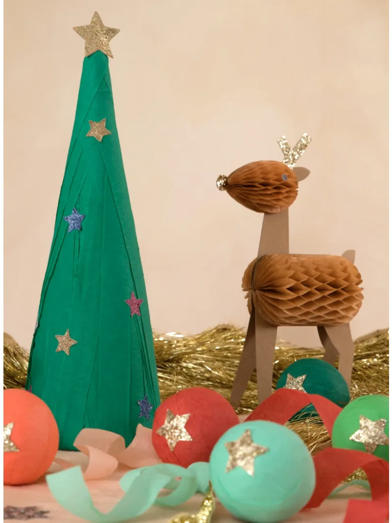 Χάρτινα honeycomb διακοσμητικά σε σχήμα ταράνδου και 3 μεγέθη.