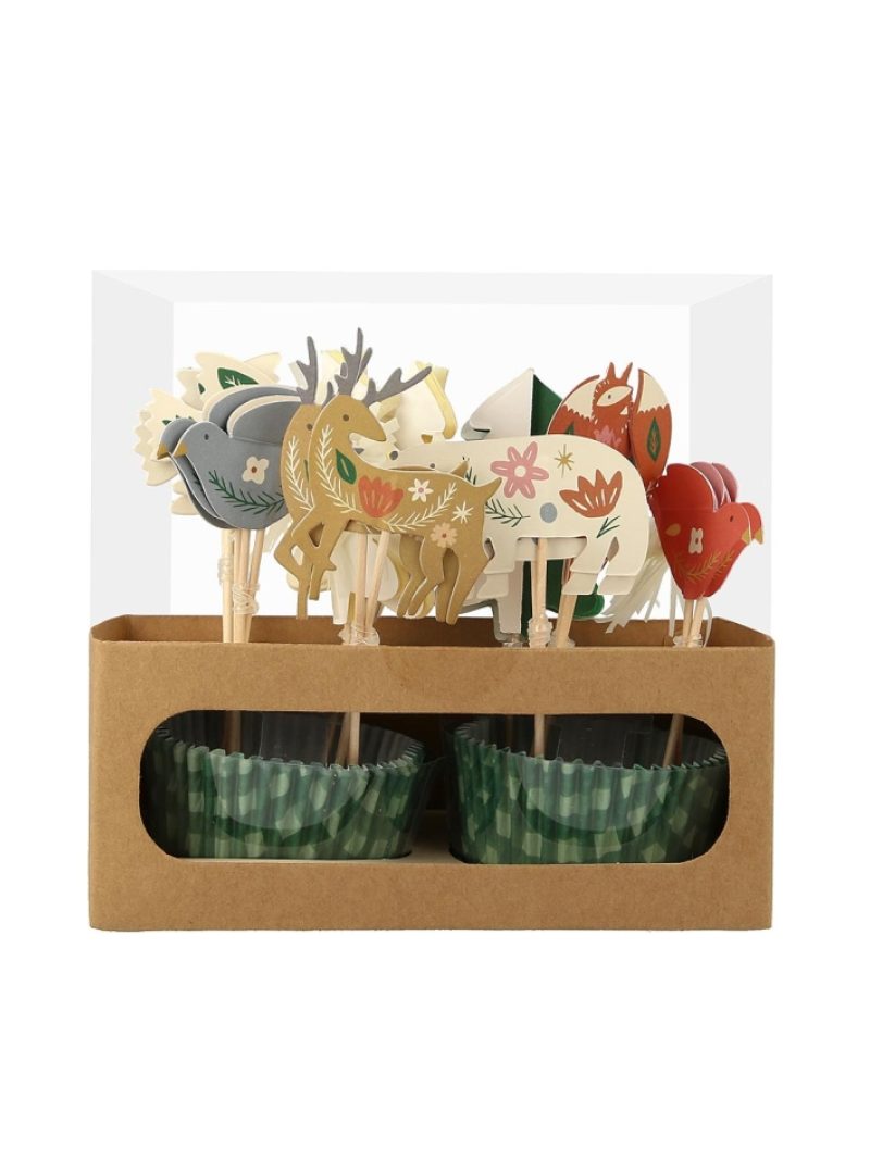 Χριστουγεννιάτικο σετ για cupcakes σε 8 σχέδια από την σειρά Folk Woodland.