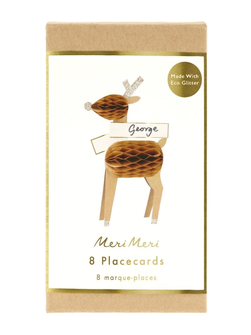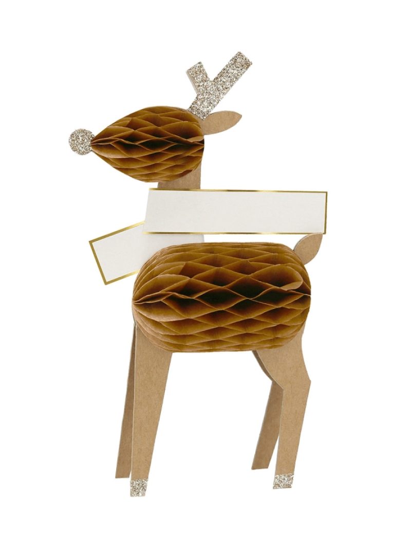 Χάρτινο placecard honeycomb ταρανδάκι σε καφέ χρώμα.