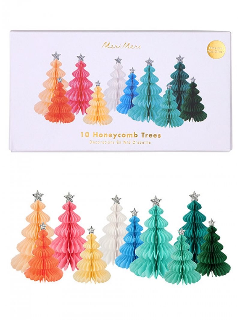 Διακοσμητικά Honeycomb Χριστουγεννιάτικα Δέντρα Rainbow, 10τμχ