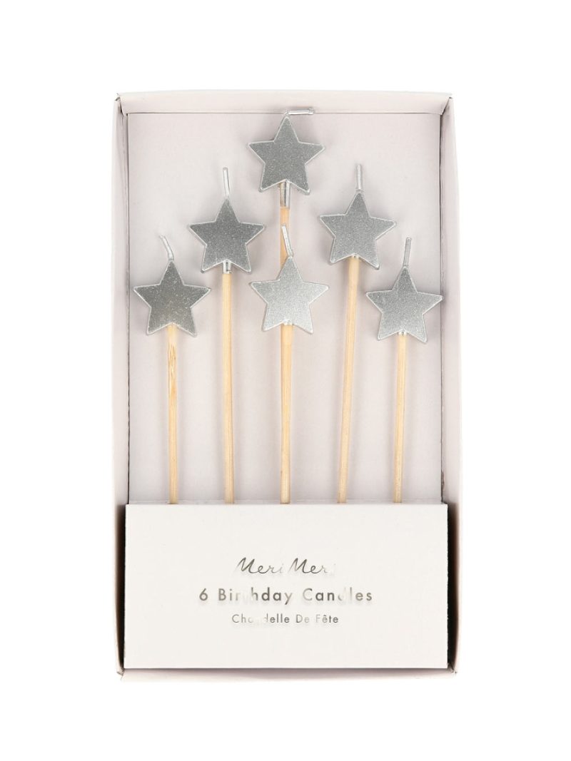 Κεράκια Αστέρια Ασημί (6τμχ)