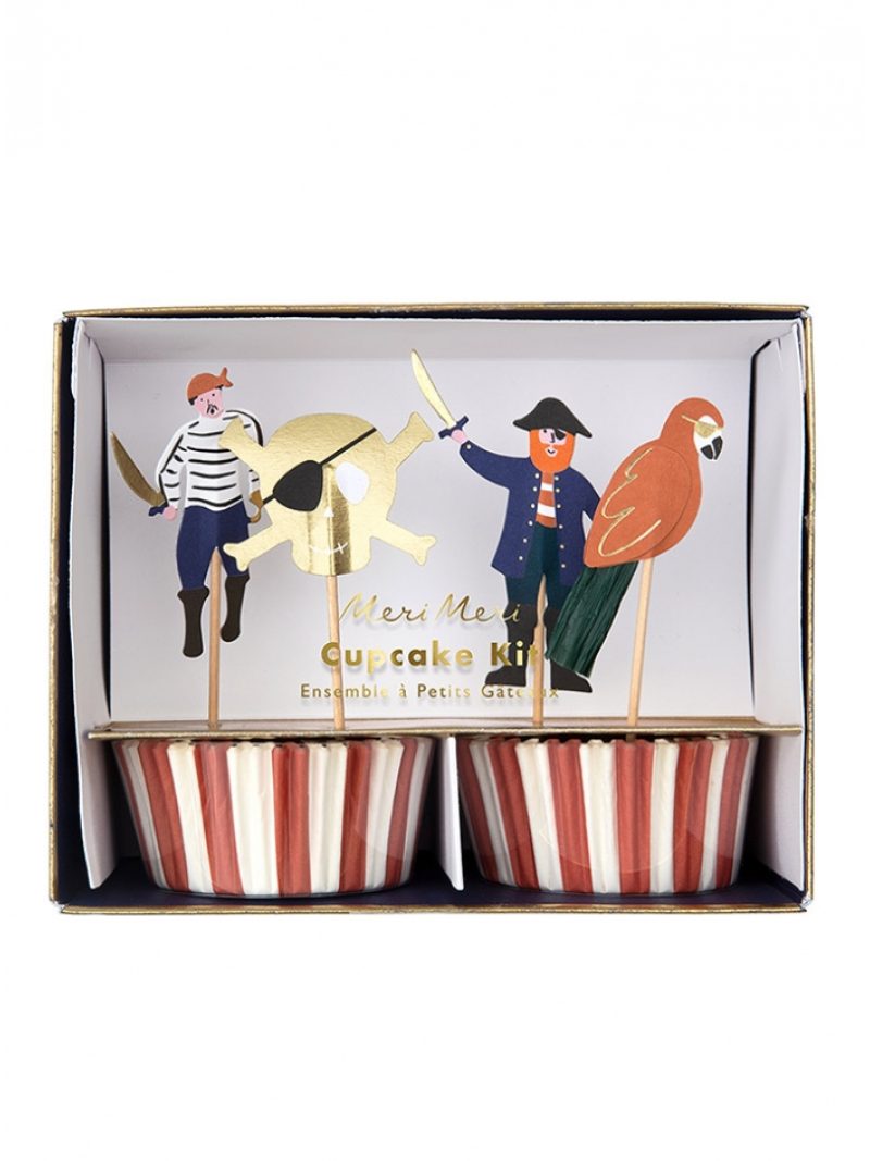 Σετ για cupcakes με θέμα τους πειρατές και το καράβι τους.