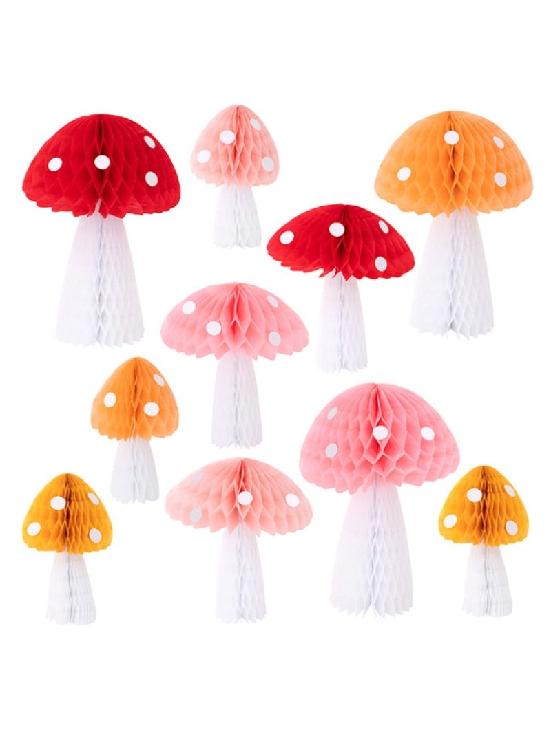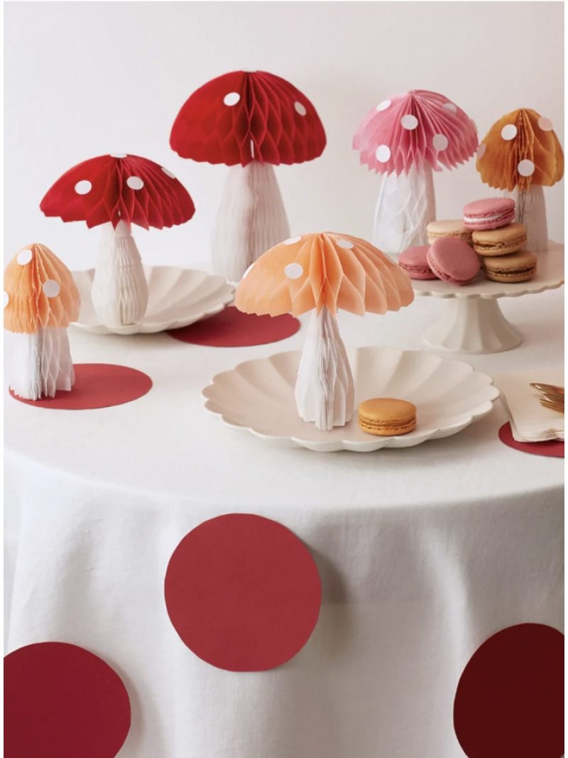 Χάρτινα honeycomb διακοσμητικά μανιτάρια σε 3 μεγέθη και χρώματα.
