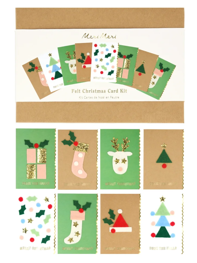 Διαθέτει οκτώ κάρτες, στις οποίες μπορείτε να προσθέσετε τα σχήματα από τσόχα και χρυσό γκλίτερ, για να φτιάξετε οκτώ διαφορετικά εορταστικά σχέδια.