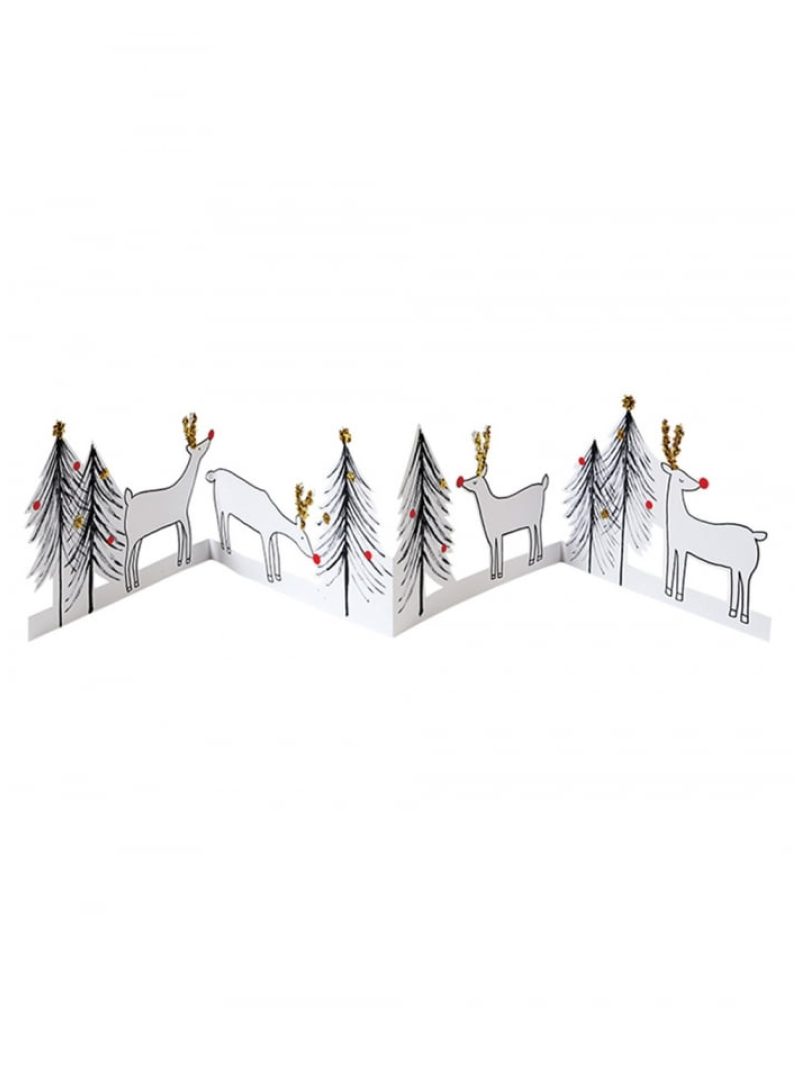 Ευχετήρια χριστουγεννιάτικη κάρτα πτυσσόμενη με ταράνδους και χριστουγεννιάτικα δέντρα.