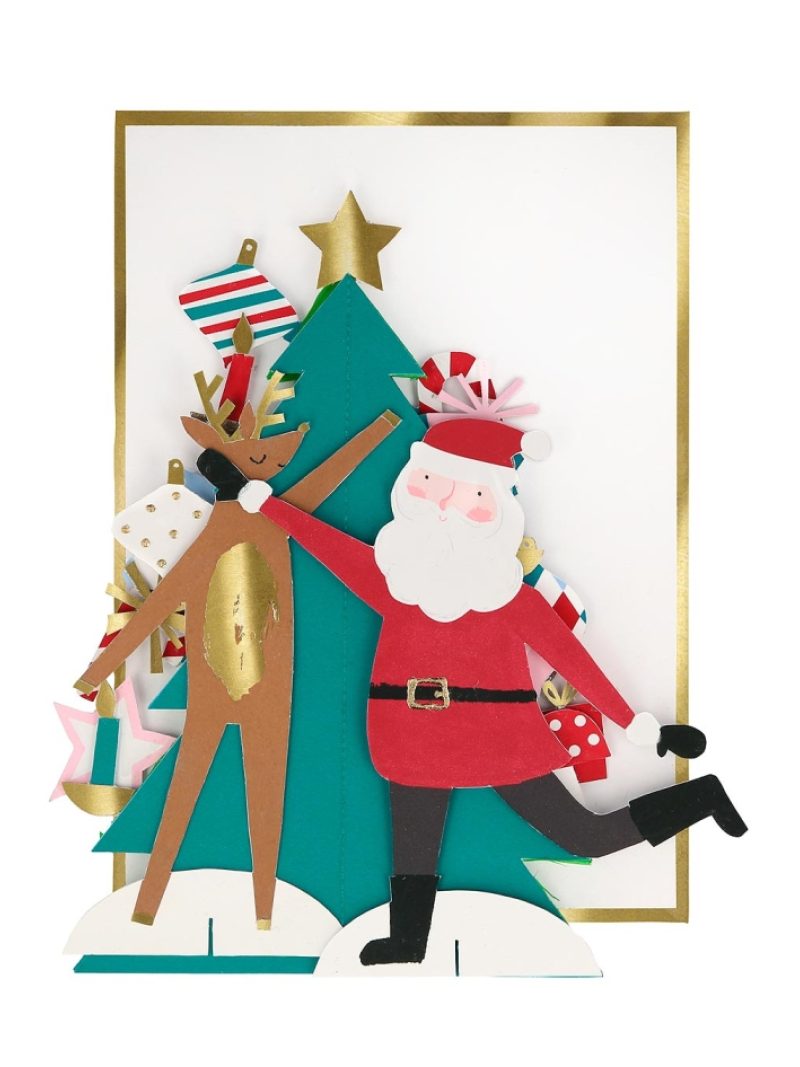 Μαζί με την κάρτα και τις ευχές σας για τα Χριστούγεννα και το νέο έτος, ο παραλήπτης θα λάβει και ένα πανέμορφο χριστουγεννιάτικο δεντράκι με τον Άι Βασίλη και τον τάρανδο για να στολίσει τον προσωπικό του χώρο.