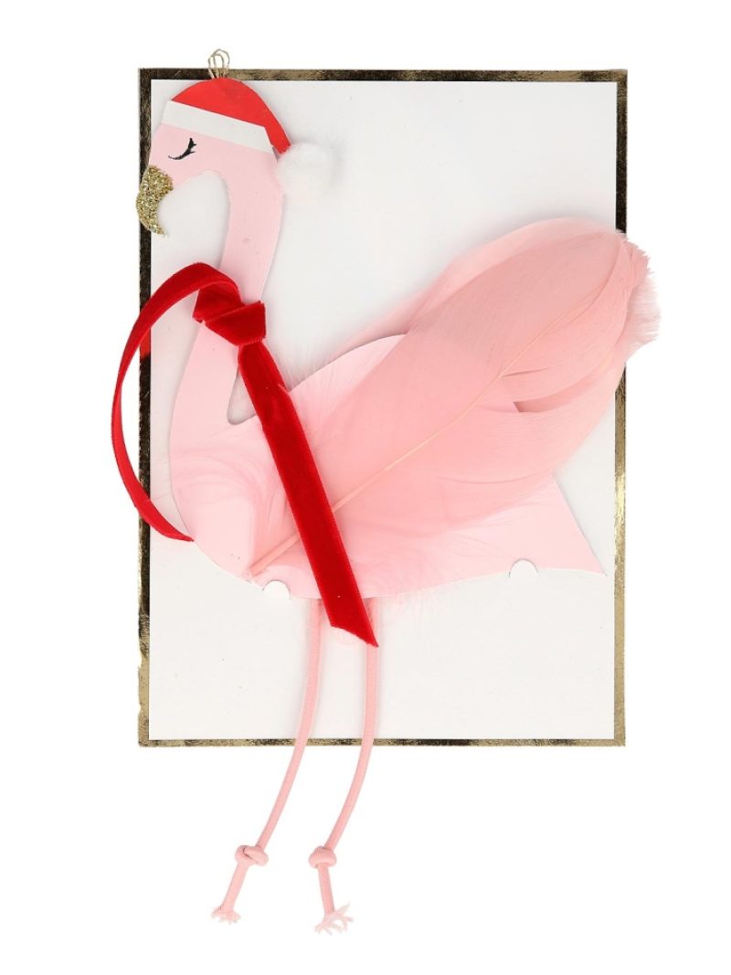 Χάρτινη χριστουγεννιάτικη ευχετήρια κάρτα φλαμίνγκο.