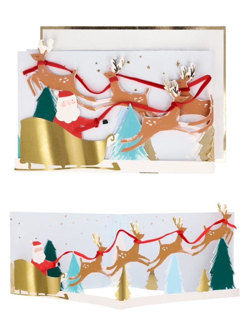Χάρτινη χριστουγεννιάτικη ευχετήρια κάρτα με το έλκηθρο του Άι Βασίλη.