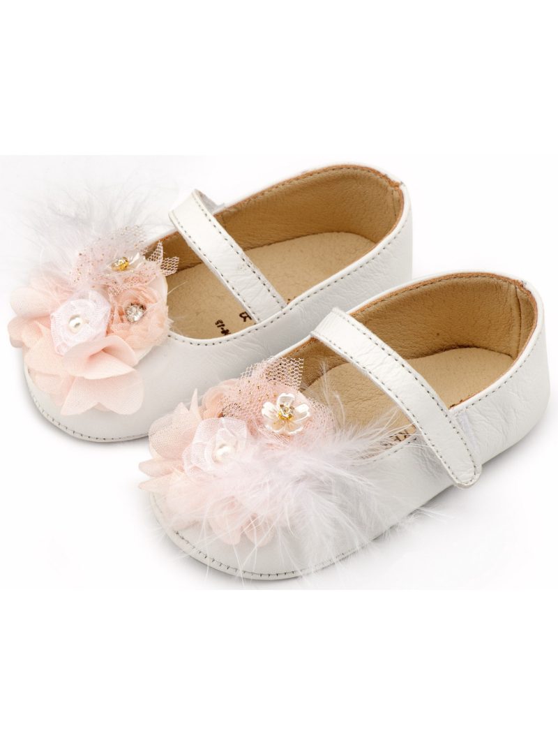 Γοβάκι Μονή Μπαρέτα Διακοσμημένο με Λουλούδι και Πούπουλα MI1664 Λευκό