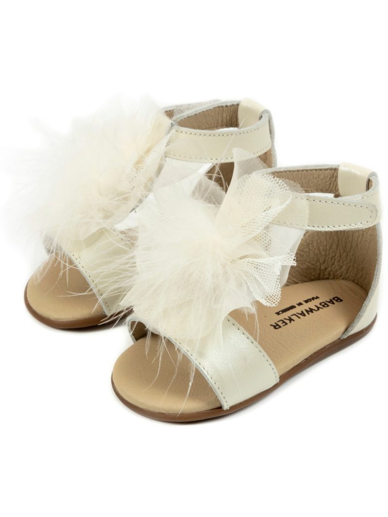 Δερμάτινο Πέδιλο Διακοσμημένο με Πον Πον PRI2599 Εκρου