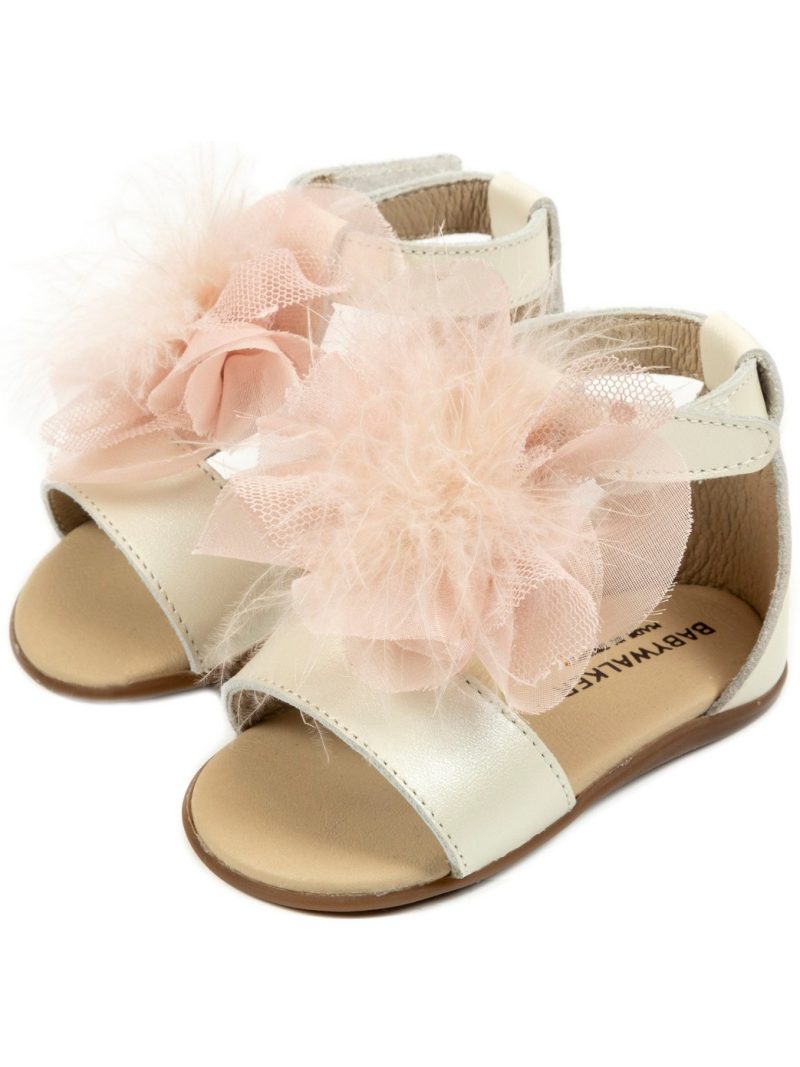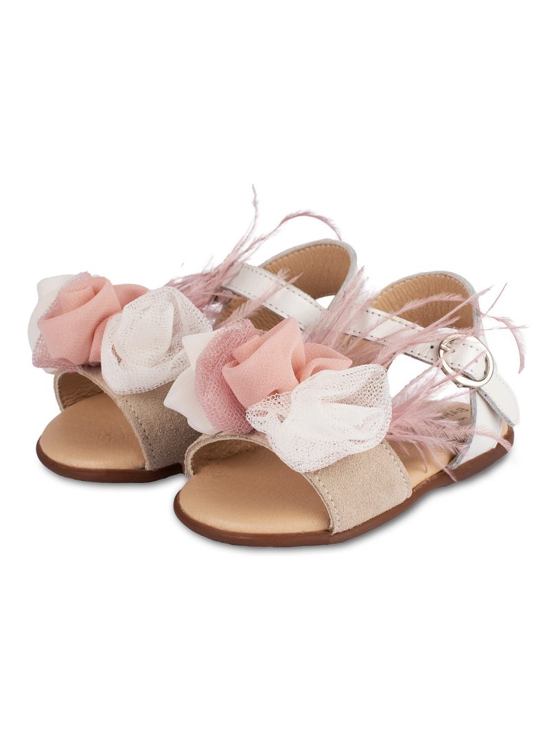 Πέδιλο Διακοσμημένο με Λουλούδια και Φτερά PRI2616 Εκρού Ροζ
