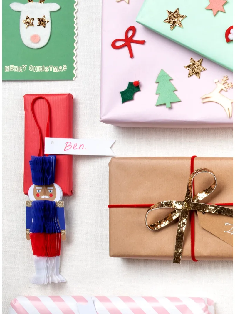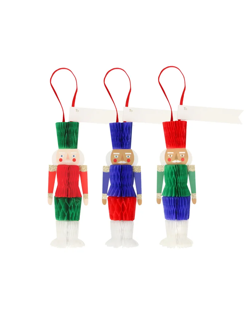 Χάρτινα honeycomb gift tags 3 αποχρώσεων σε σχήμα καρυοθραύστη.