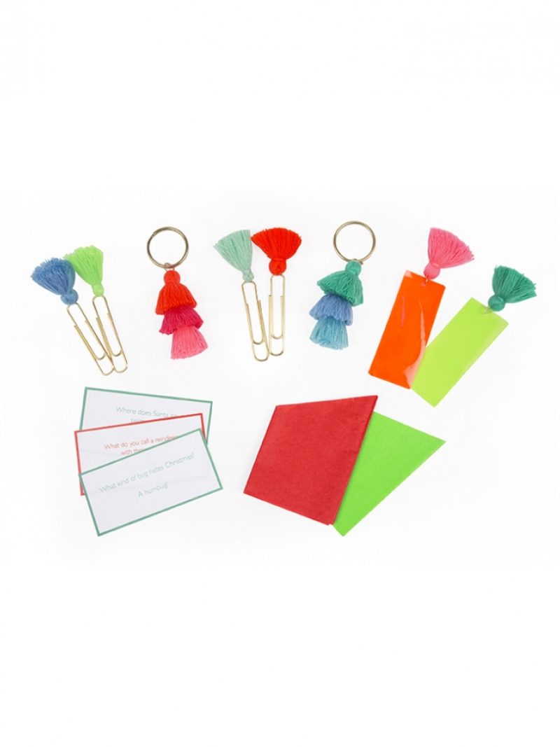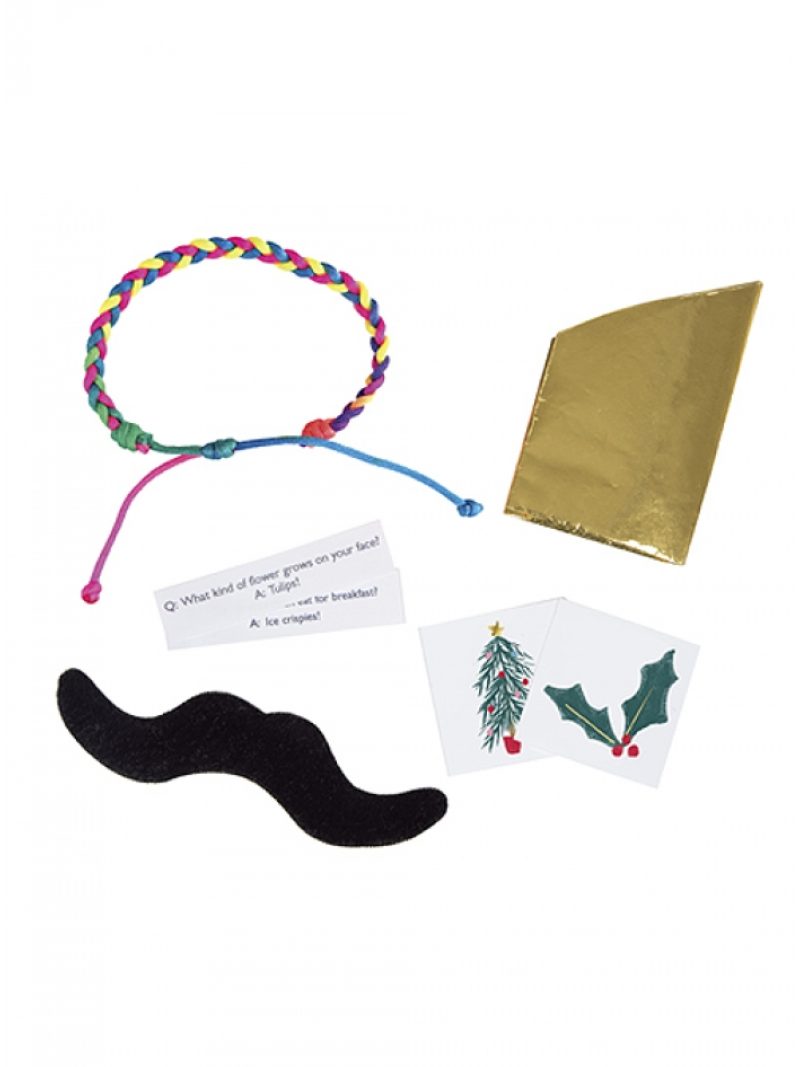 Κάθε cracker pom pom περιλαμβάνει 1 συνδετήρα, σελιδοδείκτη ή μπρελόκ, 1 καπέλο και 1 αστείο.