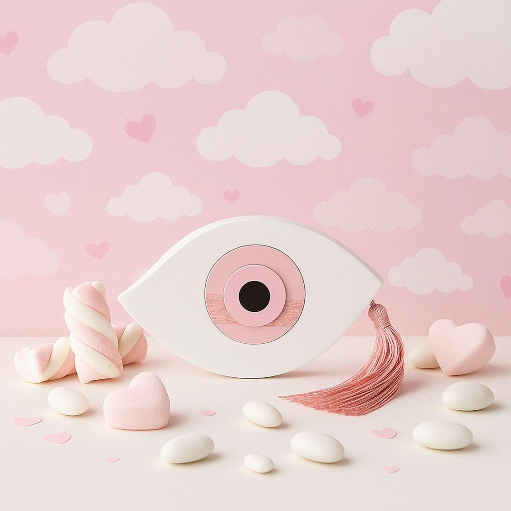 Μπομπονιέρα Βάπτισης Ματάκι Ροζ Διακοσμητικό