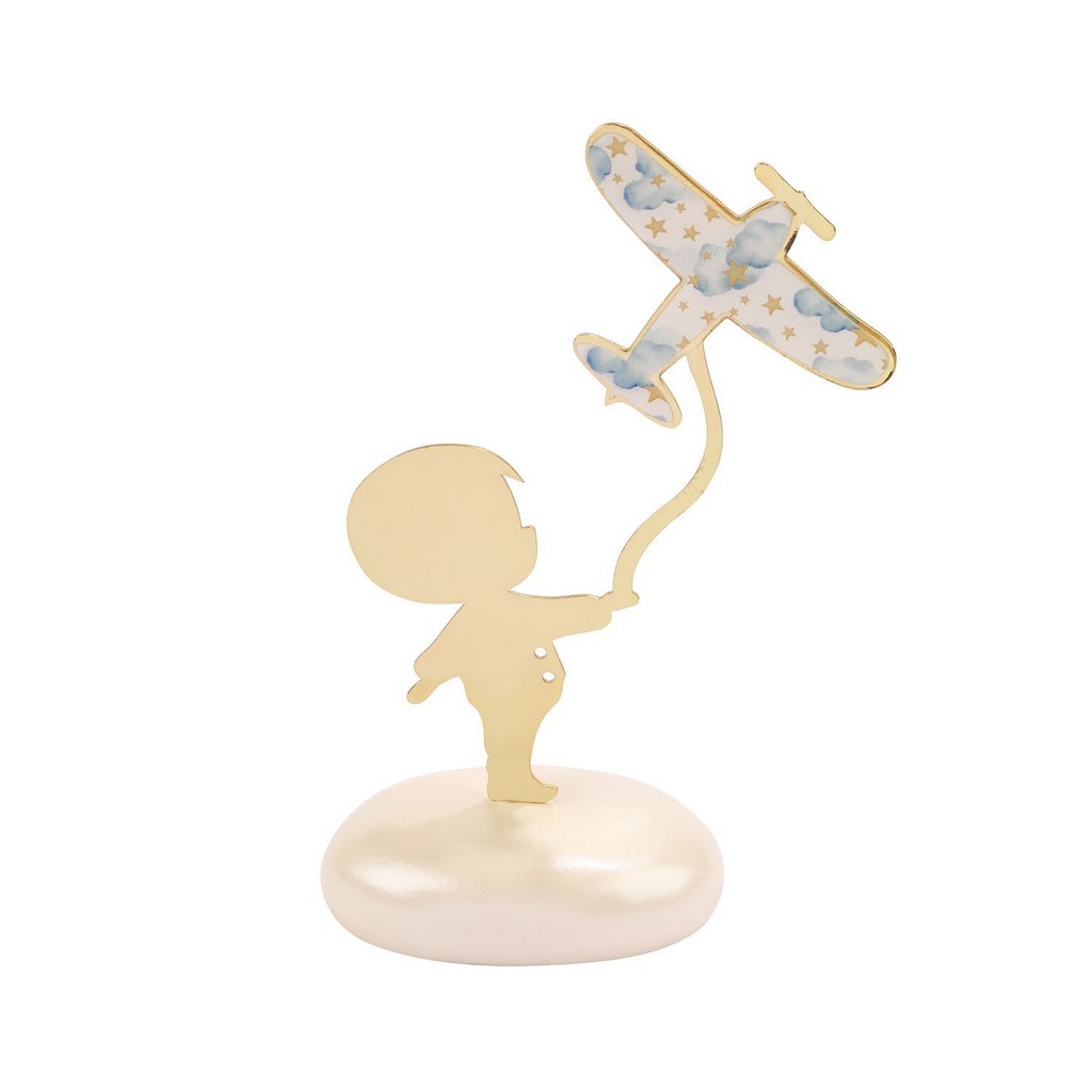 Μπομπονιέρα βάπτισης μεταλλικό αγόρι με αεροπλάνο, διακοσμημένο με σύννεφα και αστέρια πάνω σε βότσαλο, ιδανική επιλογή για μια αξέχαστη βάπτιση.