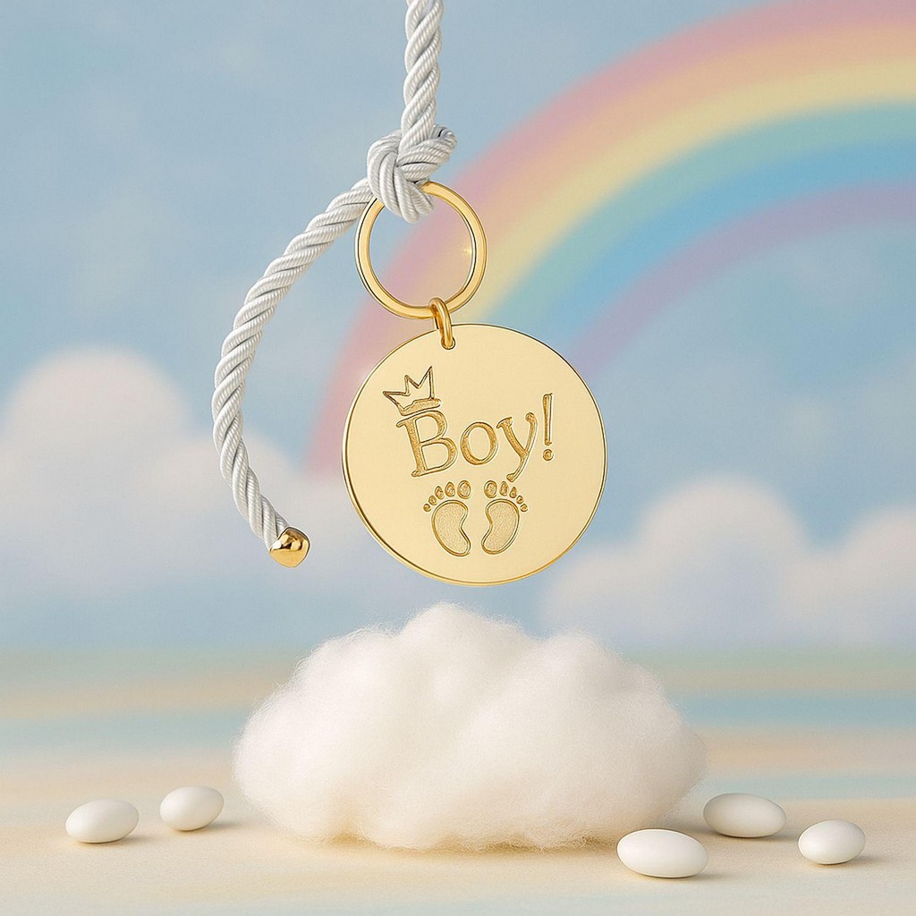 Μπομπονιέρα βάπτισης μεταλλικό κρεμαστό μπρελόκ για αγόρι διακοσμημένο με χαριτωμένα πατουσάκια και κορώνα, συμβολίζοντας τη βασιλική θέση του μικρού σας πρίγκιπα στην καρδιά σας.