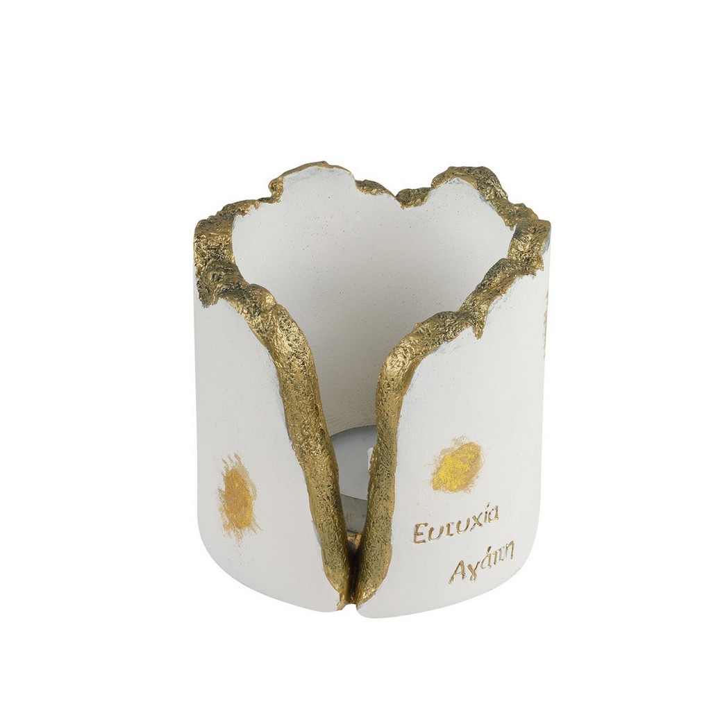 Βαζάκι Λευκό με Ευχές και Χρυσές Πινελιές με Ρεσώ 24023Α