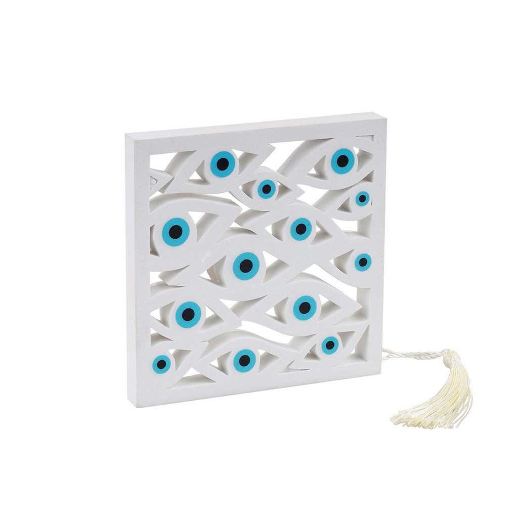 Διακοσμητικό Καδράκι με Μοτίβα Ματιών σε Λευκό και Γαλάζιο 24015