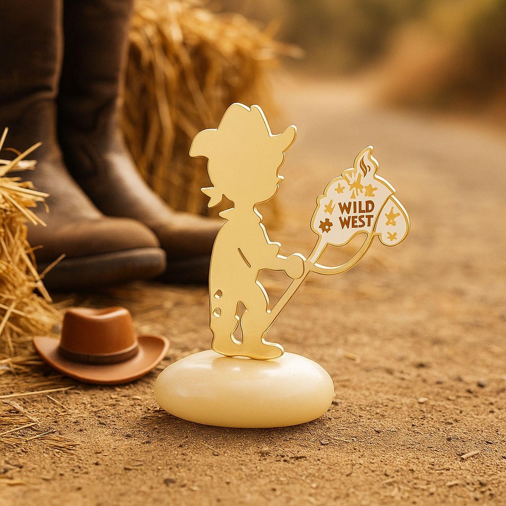 Καλπάστε στην καρδιά της Άγριας Δύσης με τη μοναδική μπομπονιέρα βάπτισης που φέρνει κοντά σας την αυθεντική ατμόσφαιρα του καουμπόι και του αλόγου. Ένα μικρό ταξίδι έτοιμο να συνοδεύσει κάθε μικρό καουμπόι σε ένα μονοπάτι γεμάτο όνειρα και ανακαλύψεις.