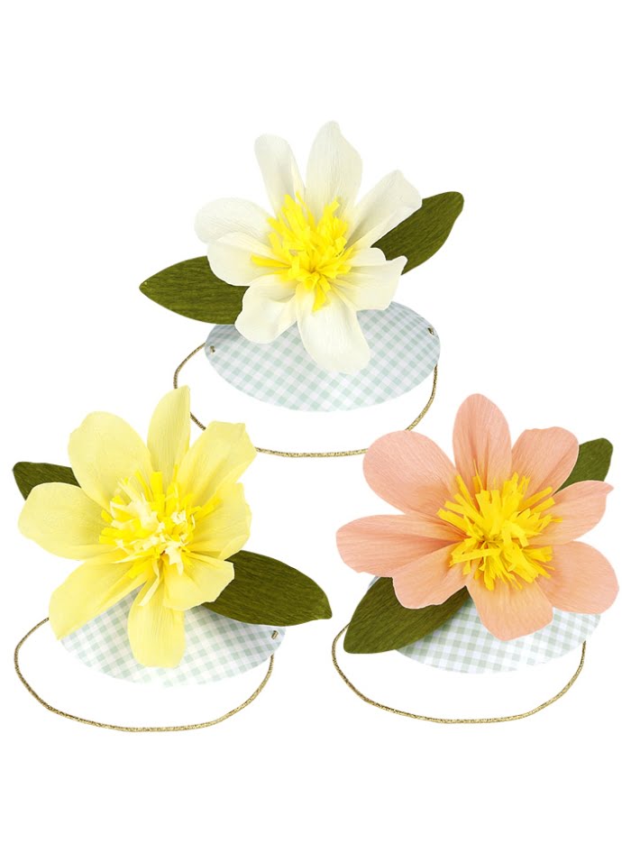 Χάρτινα καπελάκια με λουλούδια σε 3 χρώματα.