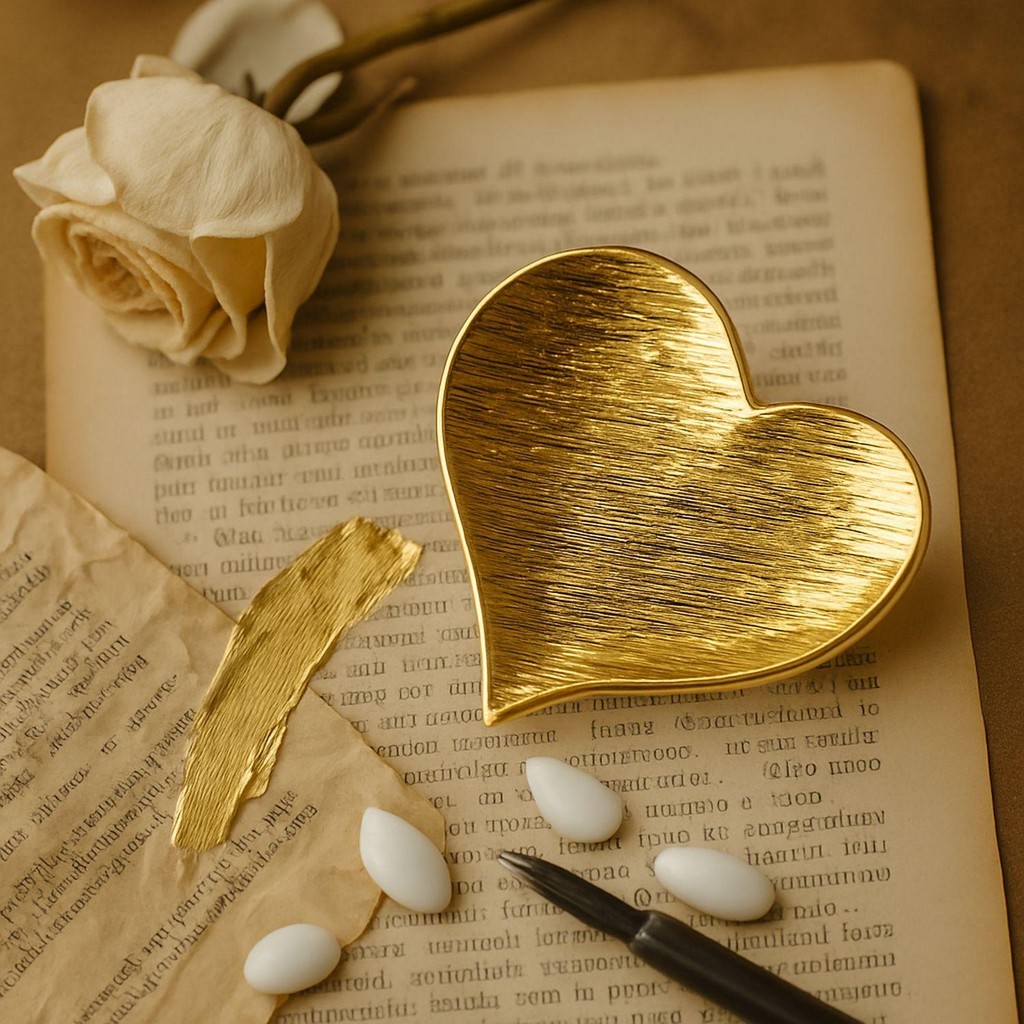 Ένα μοναδικό σφυρήλατο πιατάκι σε σχήμα καρδιάς σε χρυσό χρώμα,τέλειο αναμνηστικό που ξεχωρίζει για την πολυτέλεια και την ιδιαιτερότητά του.