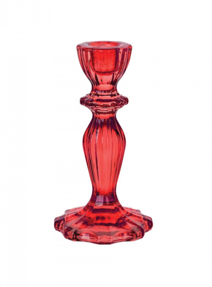 Γυάλινο κηροπήγιο σε κόκκινη απόχρωση και boho στυλ.