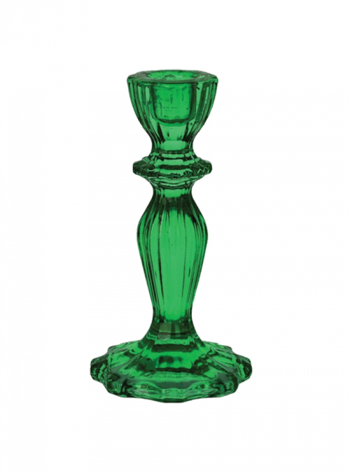Γυάλινο κηροπήγιο σε πράσινη απόχρωση και boho στυλ.