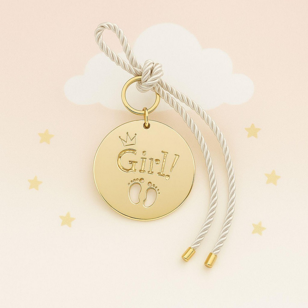 Μπομπονιέρα βάπτισης μεταλλικό κρεμαστό μπρελόκ για κορίτσι διακοσμημένο με πατουσάκια και κορώνα. Ένα μοναδικό αναμνηστικό που θα συνοδεύει τους καλεσμένους σας σε κάθε τους βήμα.