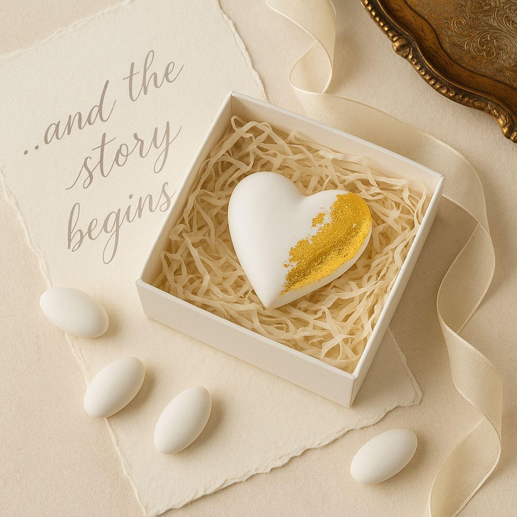 Η μπομπονιέρα γάμου μαγνητάκι καρδιά με φύλλα χρυσού δεν είναι απλώς ένα δώρο αλλά μια διαχρονική ανάμνηση που ακτινοβολεί αγάπη και κομψότητα!
