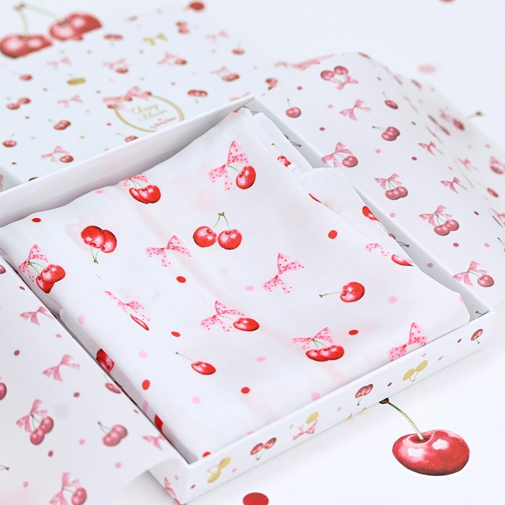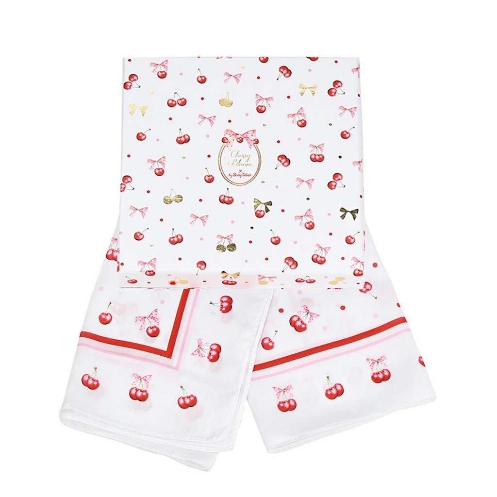 Το μαντίλι της σειράς Cherry Bloom, με παιχνιδιάρικο σχέδιο κερασιών και διάσταση 50x50cm, αποπνέει φρεσκάδα και στυλ.