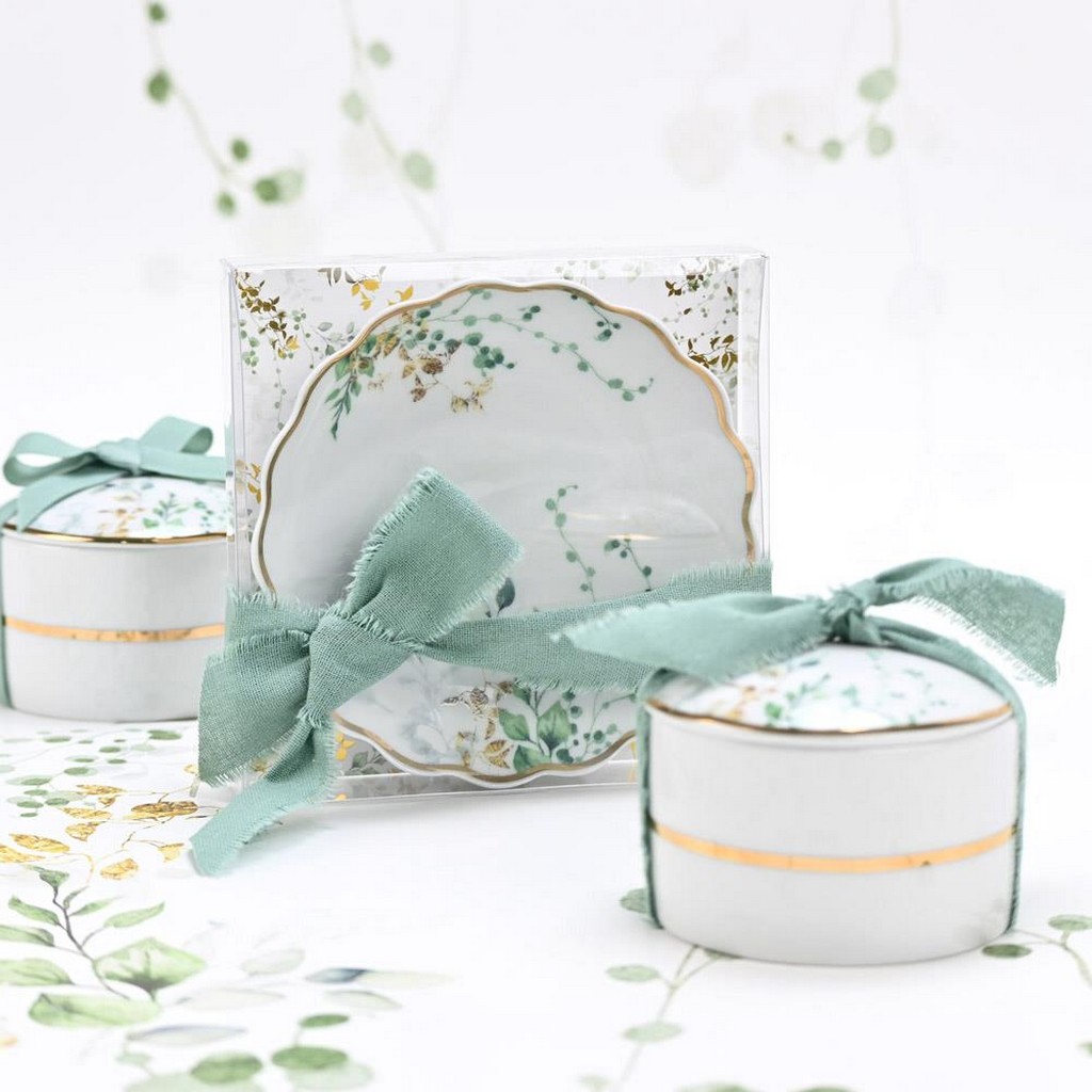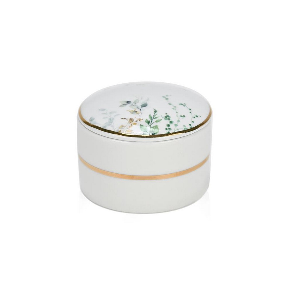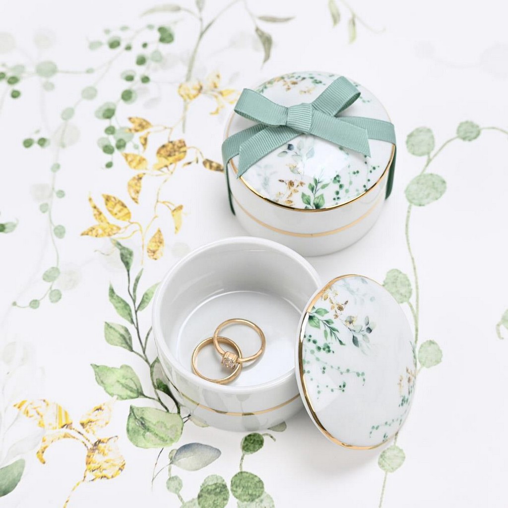 Πορσελάνινη μπιζουτιέρα με botanical σχέδιο σε αποχρώσεις του πράσινου, που φέρνει τη φρεσκάδα της φύσης σε κάθε χώρο.