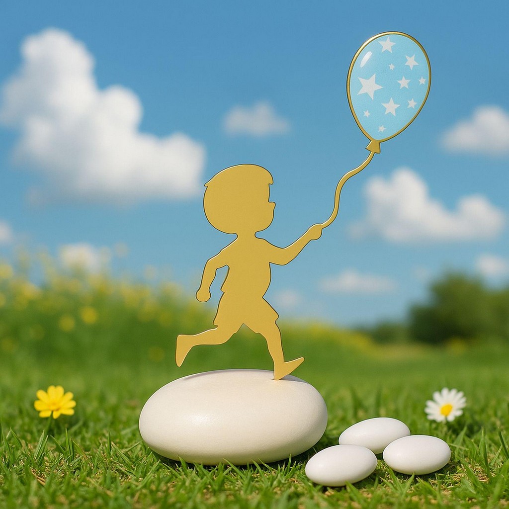 Μπομπονιέρα Βάπτισης Αγόρι με Μπαλόνι σε Βότσαλο 9156 (Υ 14cm x Π 6cm)