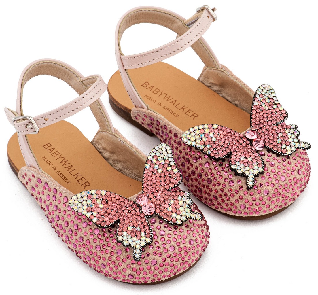 Γαλλικό Σαμπό Διακοσμημένο με Στρασένια Πεταλούδα στο Πλάι EXC5881 Ροζ